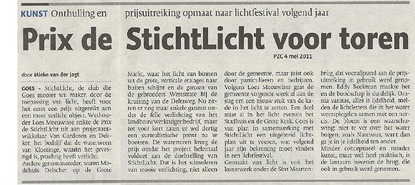 Provinciale Zeeuwse Courant 4 mei 2011 - Prix de StichtLicht voor toren