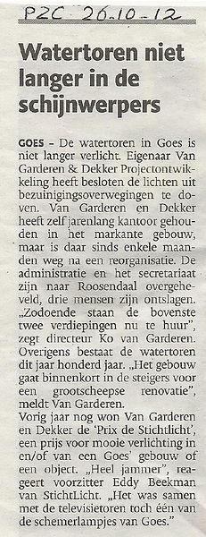 Provinciale Zeeuwse Courant 26 oktober 2012 - Watertoren niet langer in de schijnwerpers