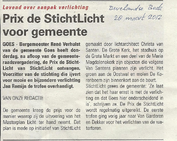 Bevelandse Bode 28 maart 2012 - Prix de StichtLicht voor gemeente